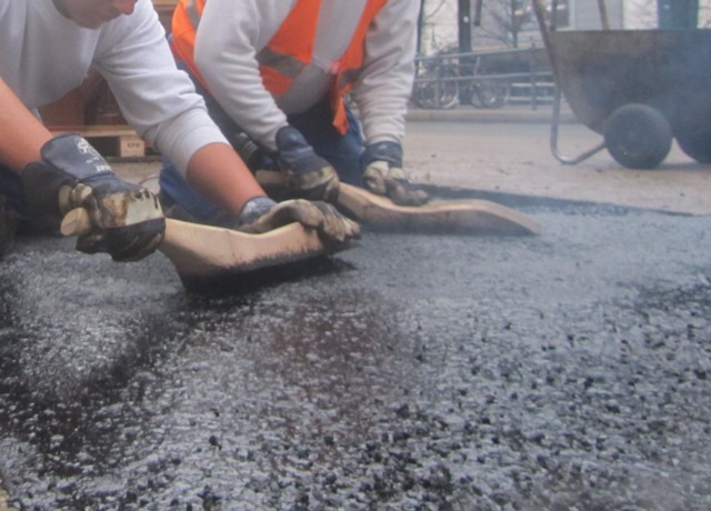 Der Einbau erfolgt sowohl im Handeinbau (Gußasphalt) als auch mit Straßenfertigern (Walzasphalt) unterschiedlicher Größe und Leistungsfähigkeit (Fahrbahnfertiger mit bis zu 6,50m Einbaubreite, Geh- und Radwegfertiger mit bis zu 2,50m Einbaubreite). Bei besonderen Projekten mit großen Einbaumengen (Autobahnen) kommen auch mehrere Fertiger gleichzeitig zum Einsatz. Entweder jeder für eine Asphaltschicht oder versetzt nebeneinander für große Einbaubreiten (Autobahnkreuze mit vielen Fahrstreifen).